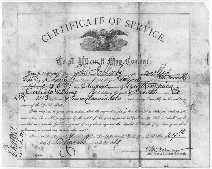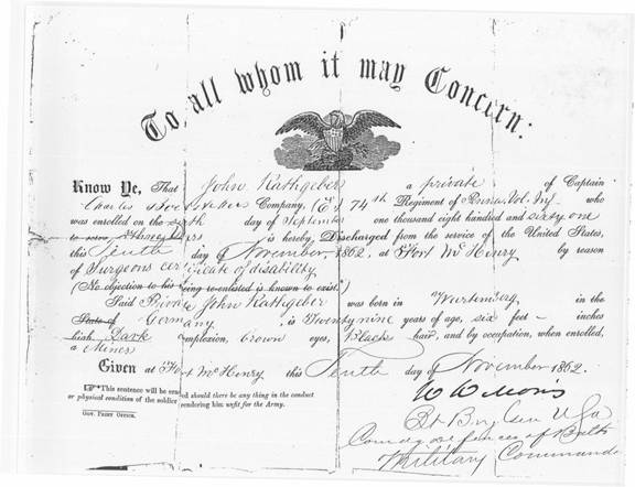 rank of private and was in Company K. He was discharged August 10, 1861. He then enlisted in the 74th Pennsylvania