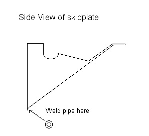If this looks like more fabricating than you care to deal with, print this page and take it, along with your skidplate to your favorite machine shop, and they'll be able to fix you right up. (just don't tell them who drew these very rough sketches! };)