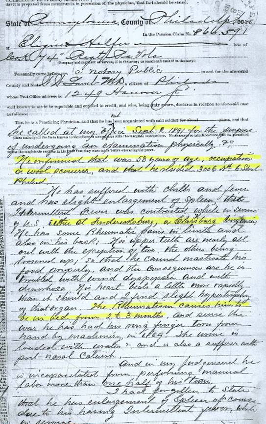 National Soldiers Home, in addition to the Doctor’s statement on Eligius’