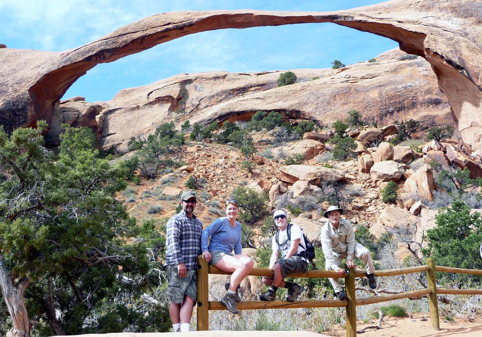 In front of Landscape Arch: John, Ilona, Vinny and Papa