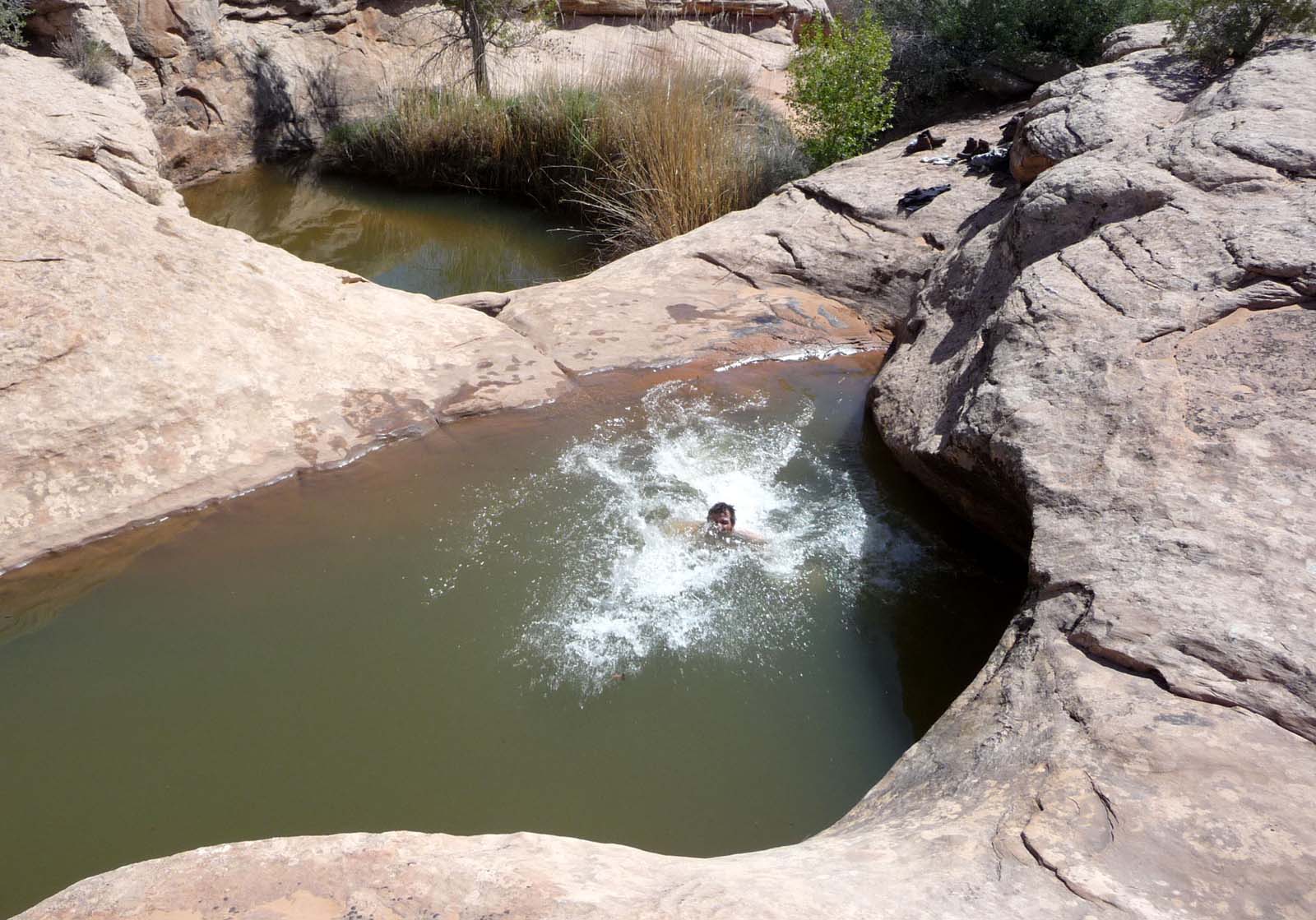 John could not resist the temptation to jump into the pool to cool off.