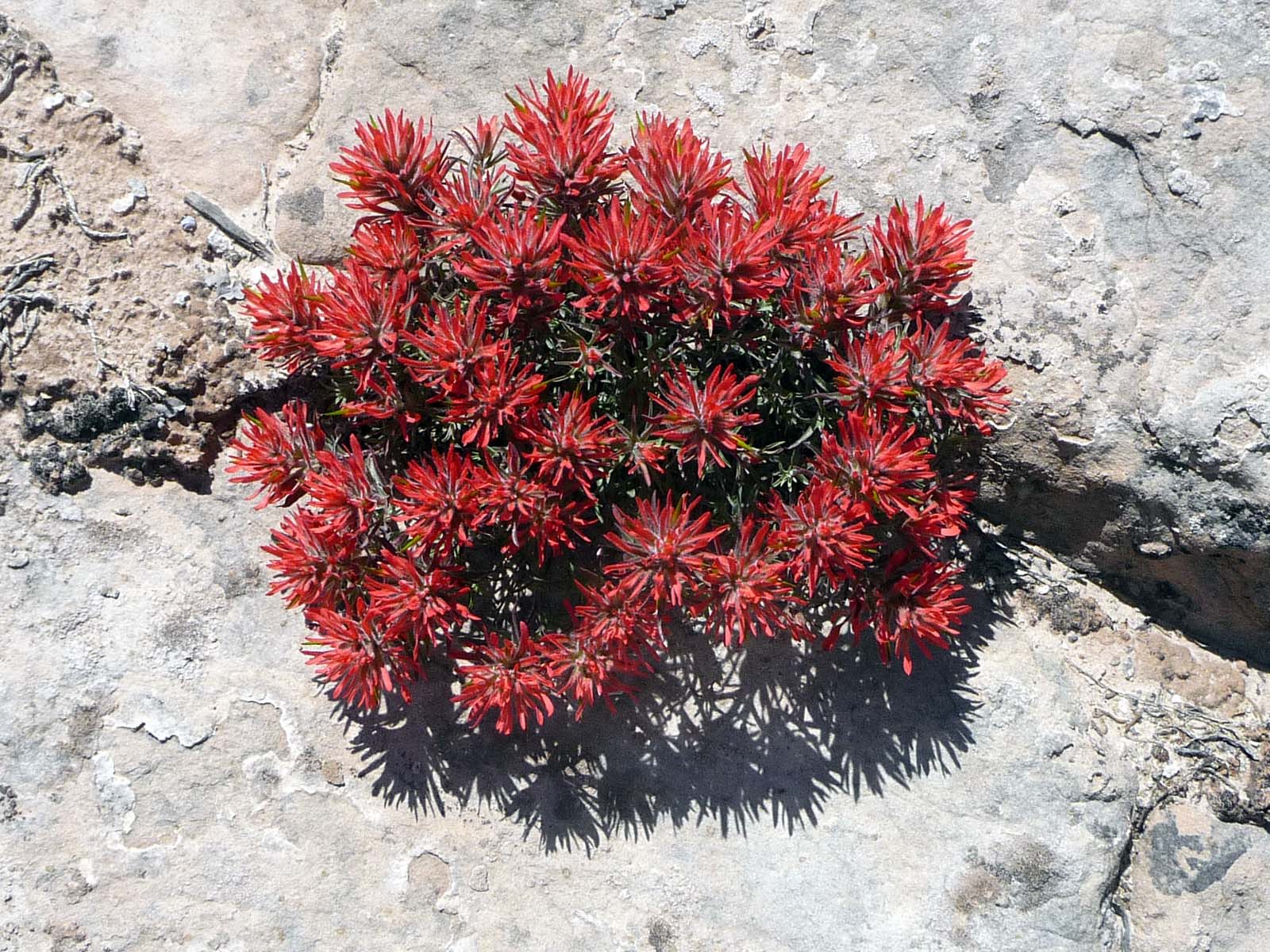Brilliant red flowers were growing in the cracks between the rock-slabs.