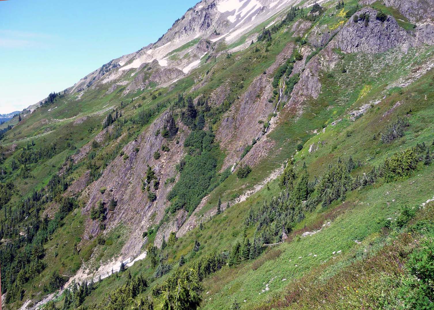 Looking back towards Eleven Bulls Basin, the trail was just faintly visible.