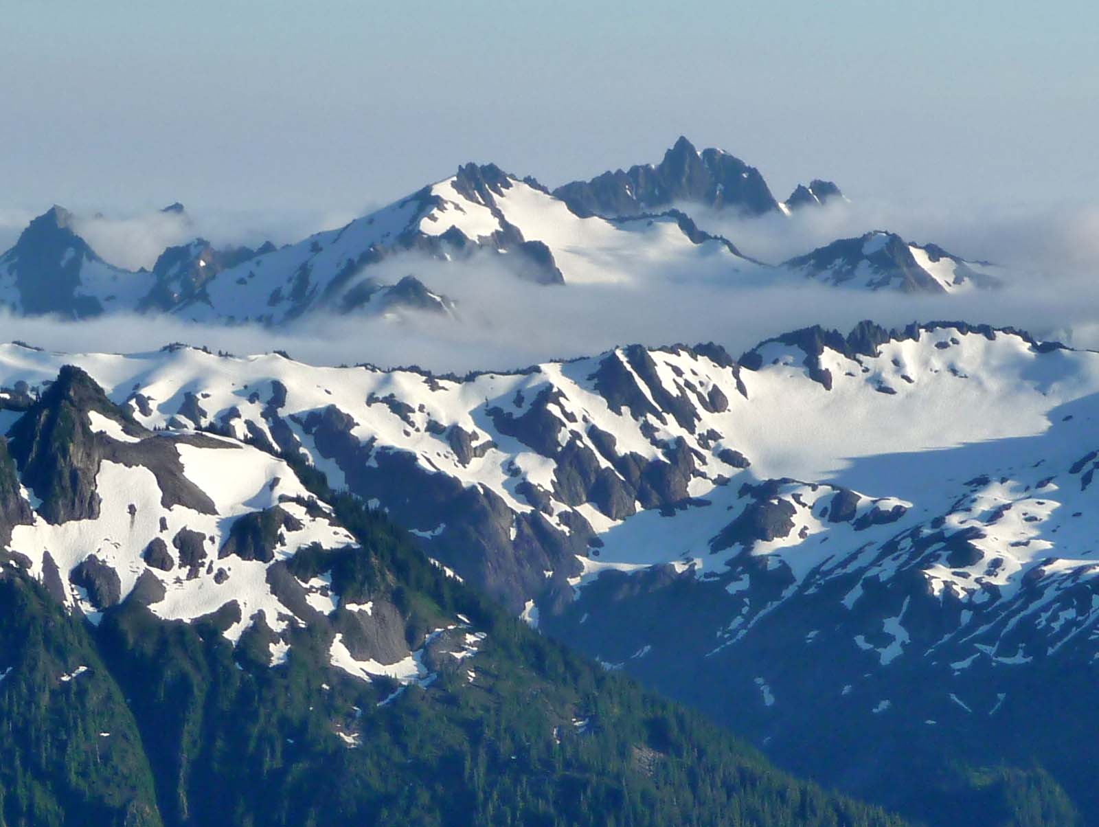 Low clouds filled the valleys behind the mountains to the west.