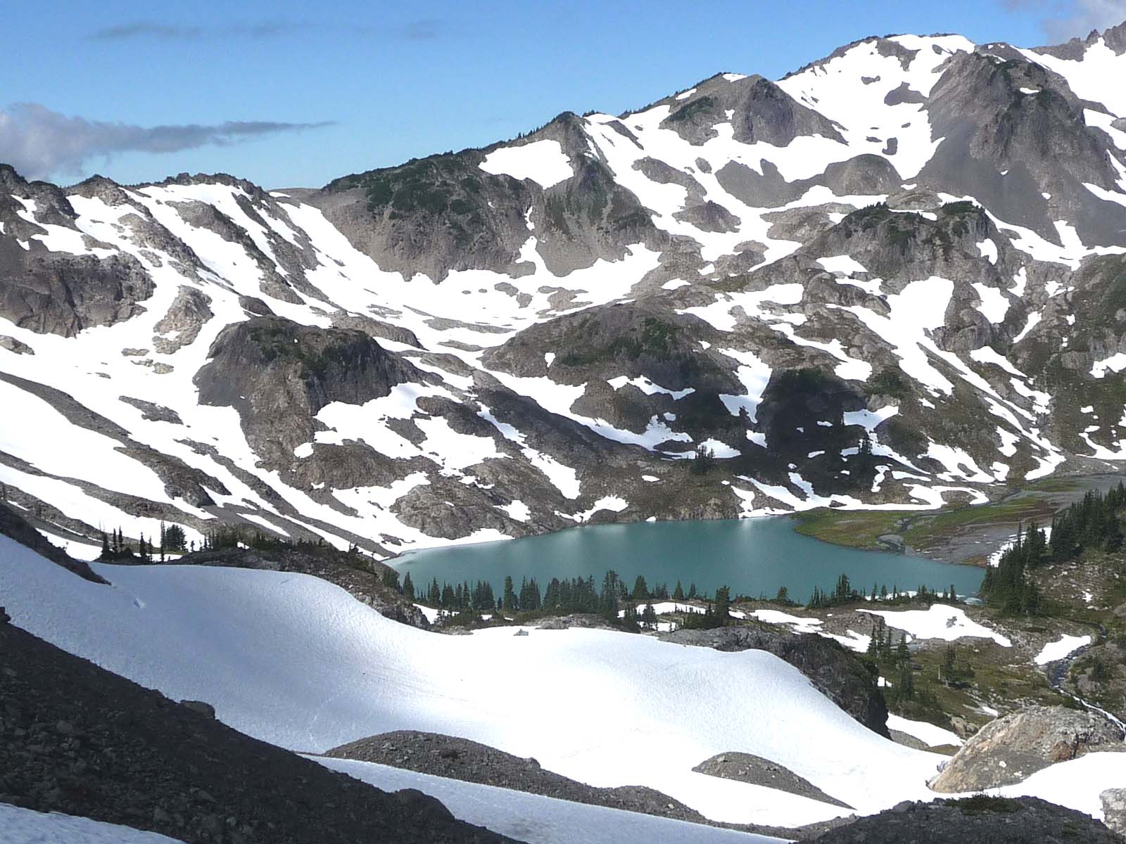 There was still lot of snow left in the basin and we could walk on snow almost all the way around the peak.