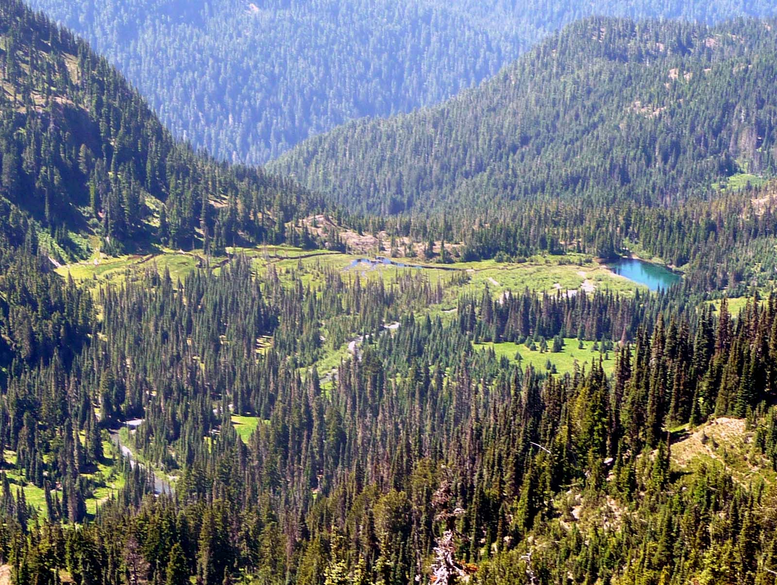 Cream Lake was far below us; the more common route through the Bailey Range goes by this lake.