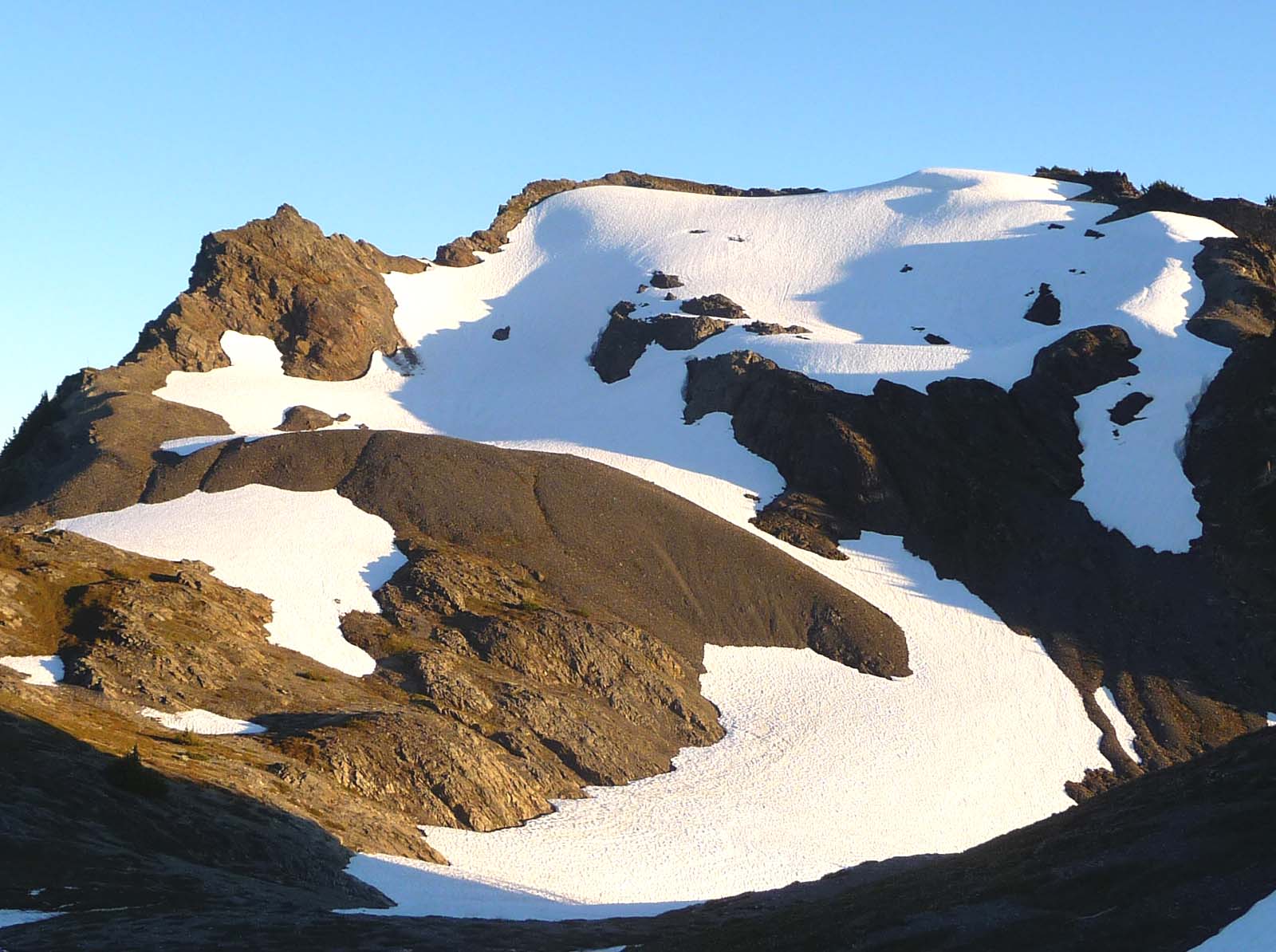 The forth day of our hike started with a steep climb up this snowfield, which was still frozen in the early morning.