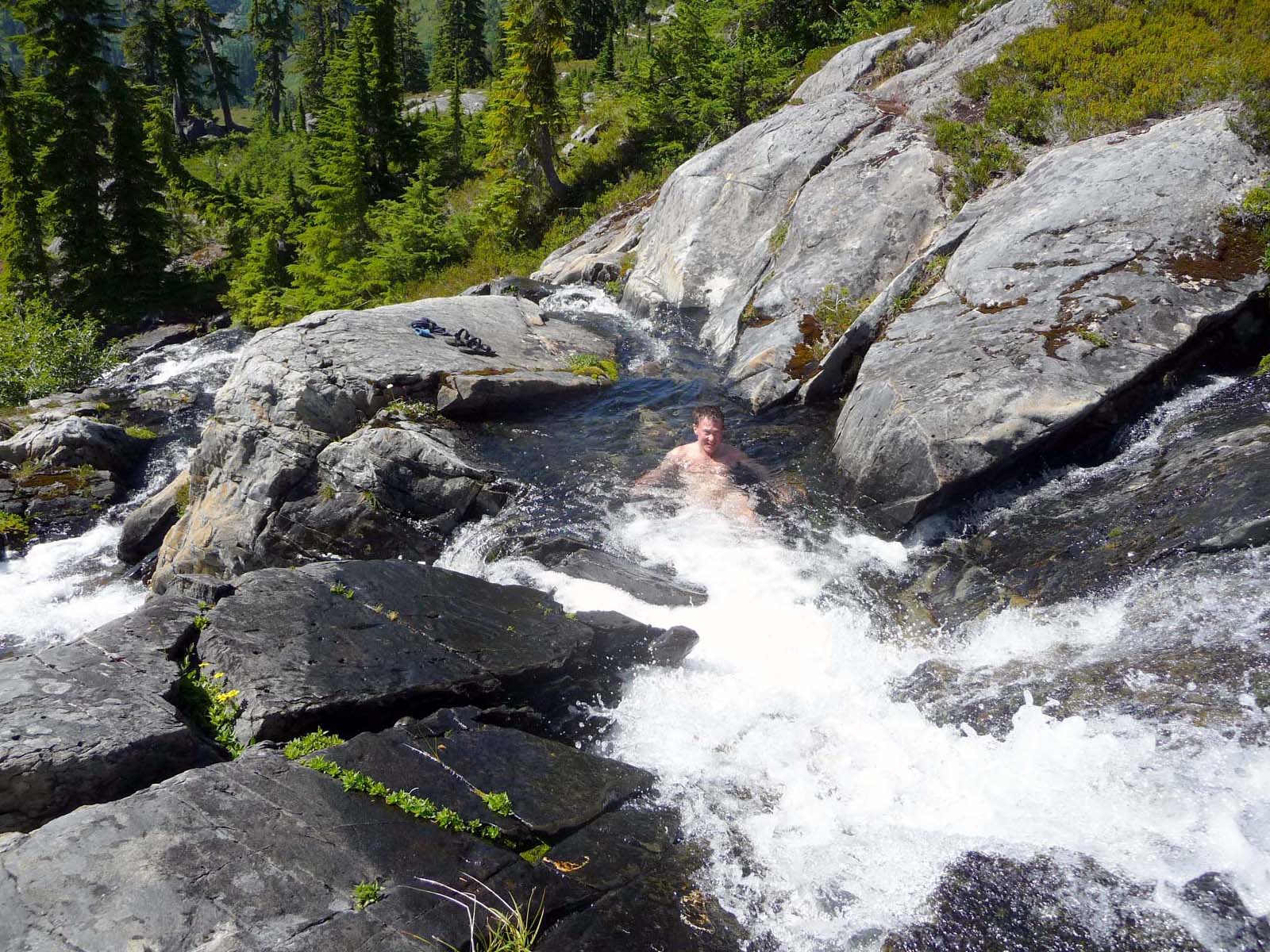 The water was ice cold, but Sam jumped in without hesitation. It was so refreshing!