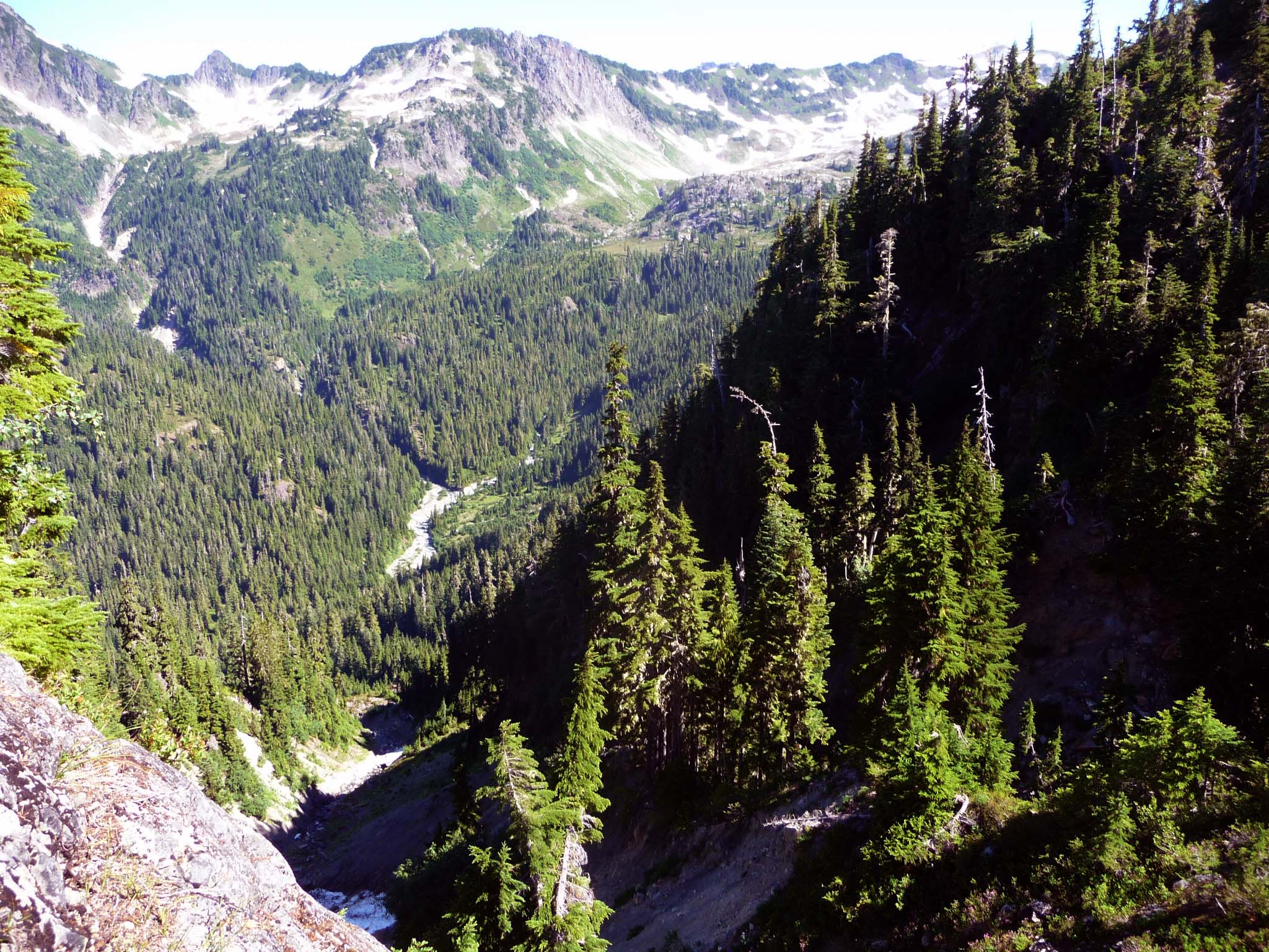 Looking back to Queets Basin and the difficult route we followed to get here. It was a moment of relief!