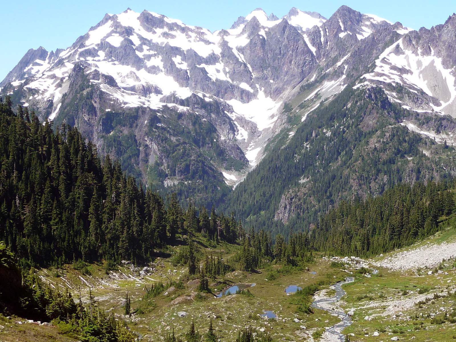Looking back from there, we had this unusual view of Mount Olympus. (Athena Peak on the left, Hermes on the right.)