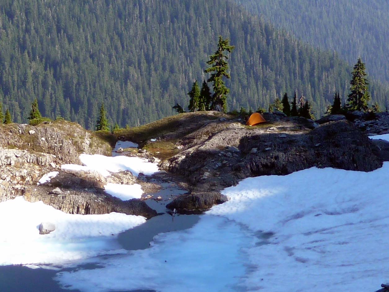 Our last camp in the wilderness, and familiar ground for me: last year I camped here and even went swimming in this lake.