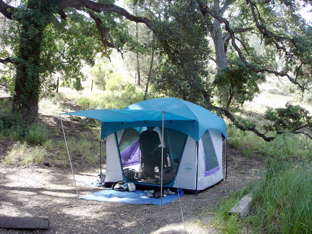 We set up our new tent under a large tree, not knowing that the racoons also considered this tree their favoutite place to hang out at night.