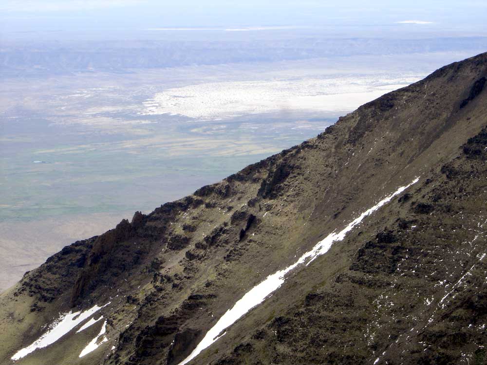 The east side of Steens Mountain, above Alvord Desert, where Kitty O'Neil set a land sped record of 512 miles/hour in 1976.