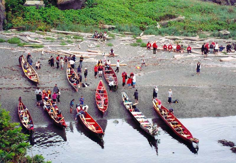 There was a large gathering of the different tribal canoes on Tatoosh Island, on their way to Tahola, where the annual tribal voyage ended.