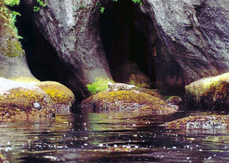 A seal watching us in surprise as we quietly glide through the shallow channels.