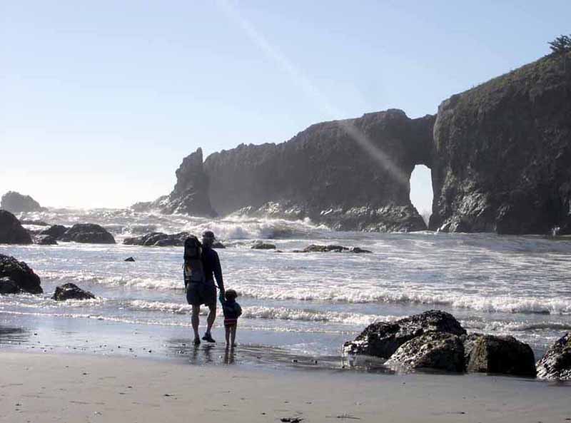 Cyrus takes his first step into the cold water of the Pacific Ocean near La Push
