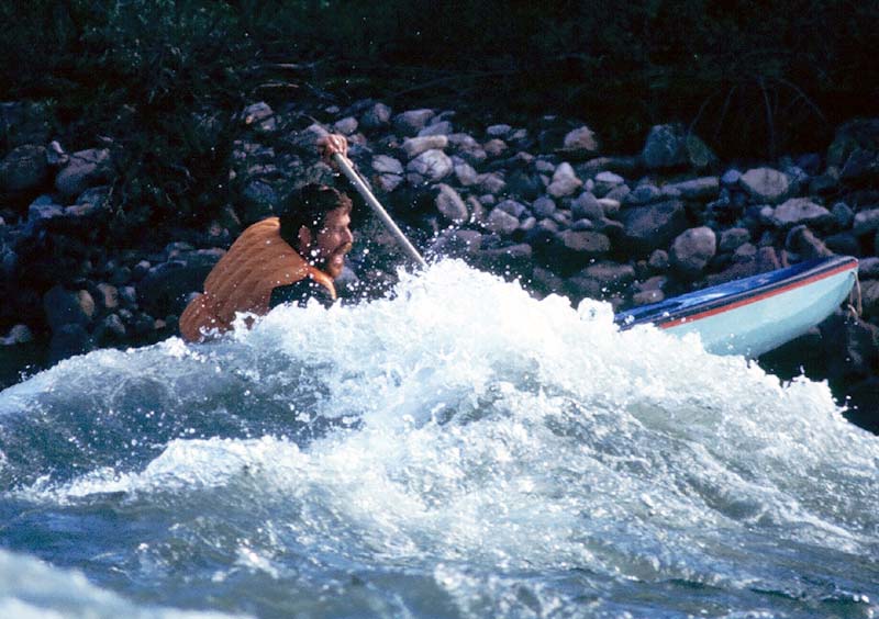 Ulrich is digging in with his paddle into a large wave; with the extra weight in the boats we had to work harder Back to Main Page