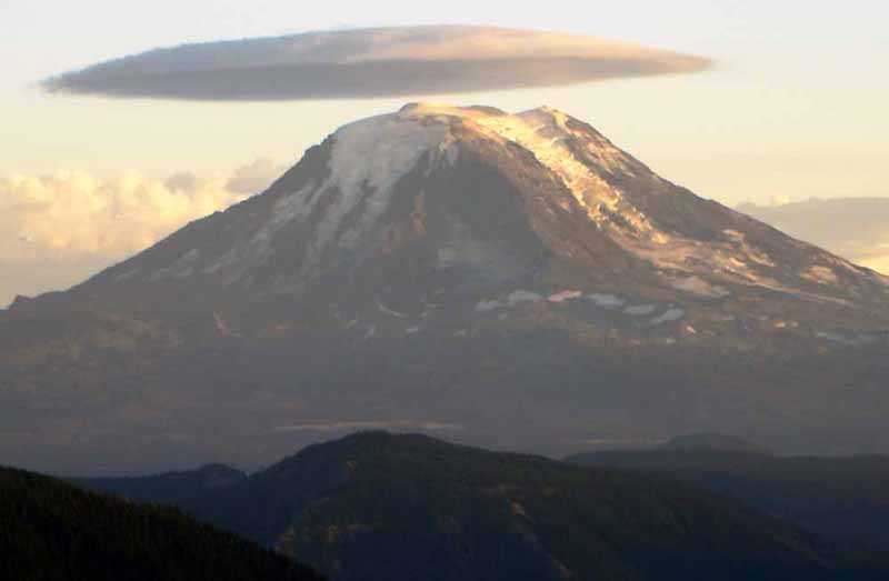 In the evening Mt. Adams had above it this strangely shaped cloud - like some giant UFO Back to Main Page