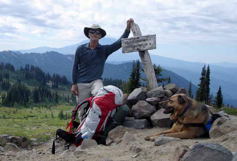 Next morning we are off to higher grounds; here we take a pause for a self-timed picture by the old Cascade Crest Trail sign Back to Main Page
