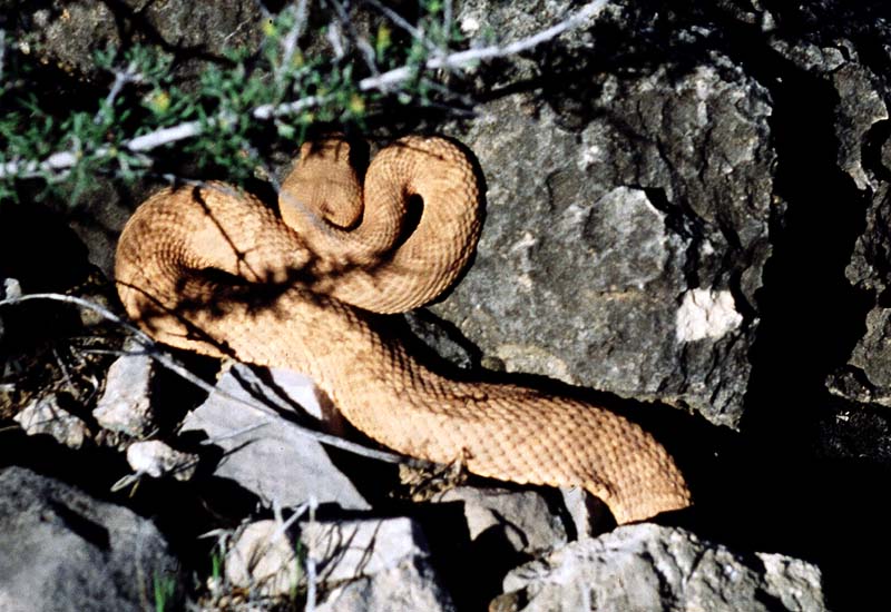 The warm weather has brought out one of the local residents: a rattle snake. Luckily, we saw it in time to avoid stepping on it Back to Main Page