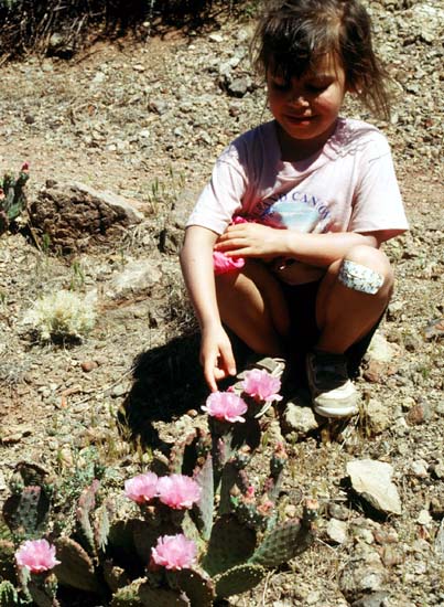 Jessica found some cactus flowers by the trail