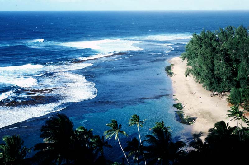 Hanakapiai Beach at the end of the road on the north shore of Kauai, the start of the trail to the Napali Coast. Navigation: click on the picture above ( left side: BACK --- right side: NEXT)
