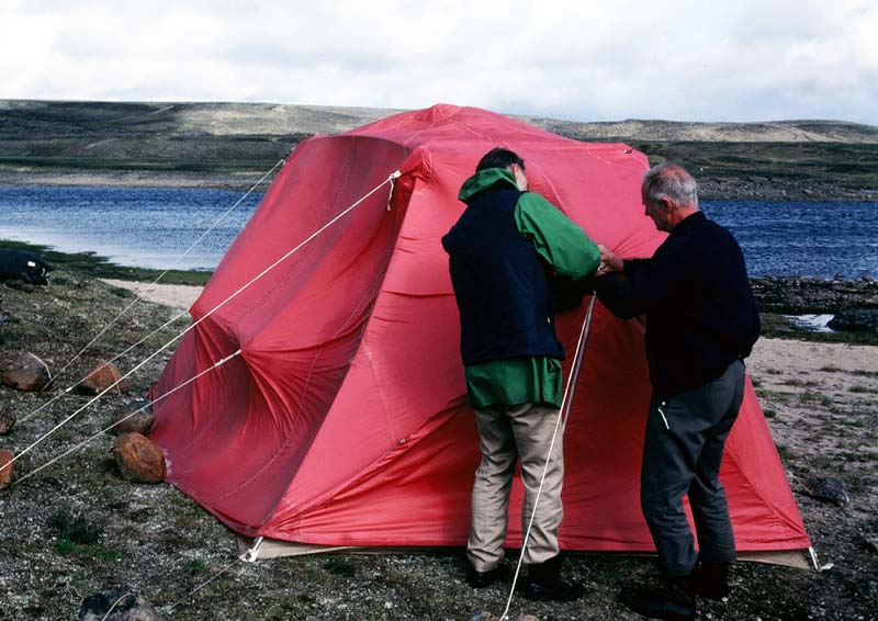 That evening the wind came up again and Jim and Duke are trying to secure the tent