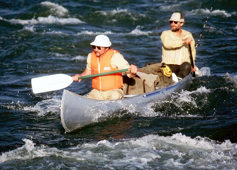 Back on the river, Alan and I continue our paddling in the open aluminum canoe