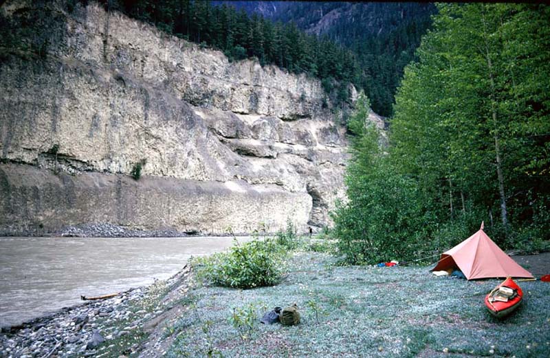 At last we were out of the domain of vertical walls and found a level gravel bar, suitable to camp on Back to Main Page