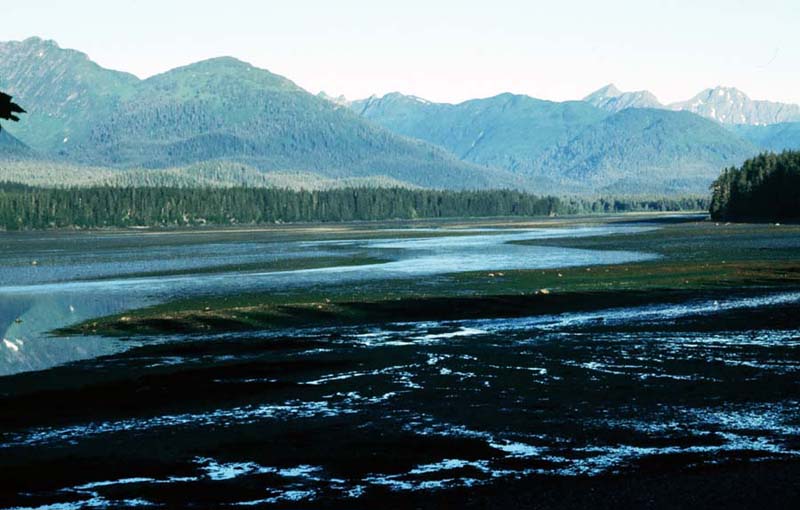 Soon we entered the immense Stikine delta at a low tide when the mudflats were all exposed Back to Main Page