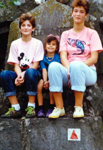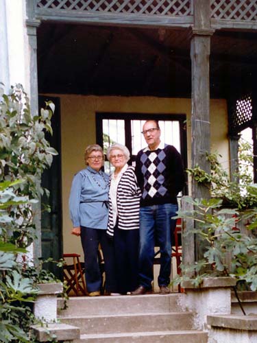 Marianne, Mana and Karcsi on the "veranda" of the old house in Kisörs, where I lived between the ages of six and seventeen