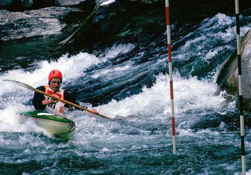 Here my teammate, Eric makes a sharp turn below the chute for the upstream gate.