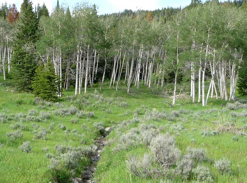 Aspen groves along the road as we were driving towards Beartooth Pass.
