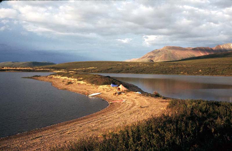 We found a narrow peninsula in the lake that was an ideal site for our first camp