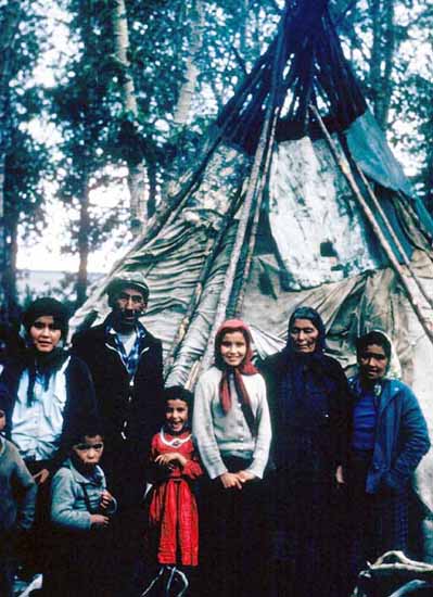 Cree Indians near James Bay invited us into their tepee to get dried out and warmed up Back to Main Page