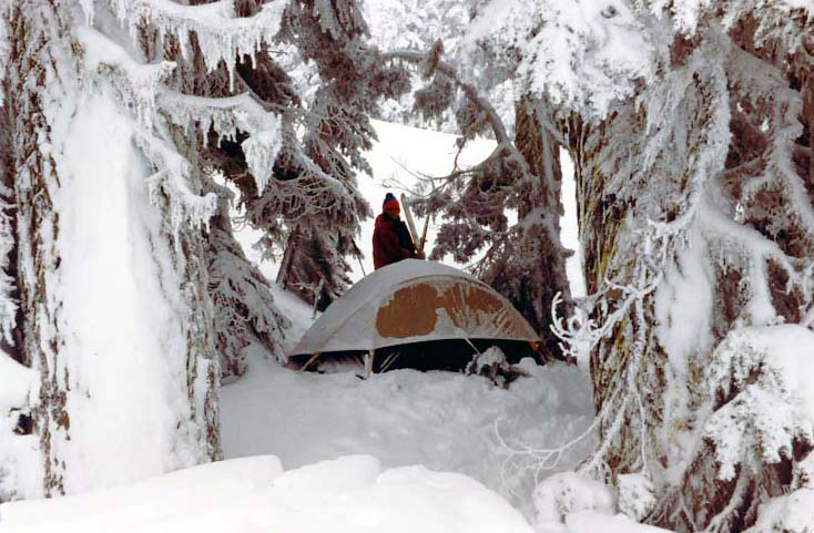 Somehow we managed to stay warm in our tiny tent while the temperature outside dropped near zero Back to Main Page