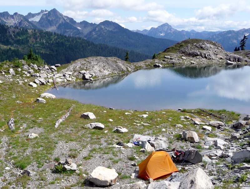 My campsite by an unnamed lake west of Mt. Noyes - Christy Glacier is visable on the top left Back to Main Page