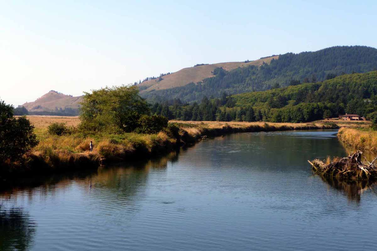 View towards the coast from the Hwy 101 bridge over the Salmon River
