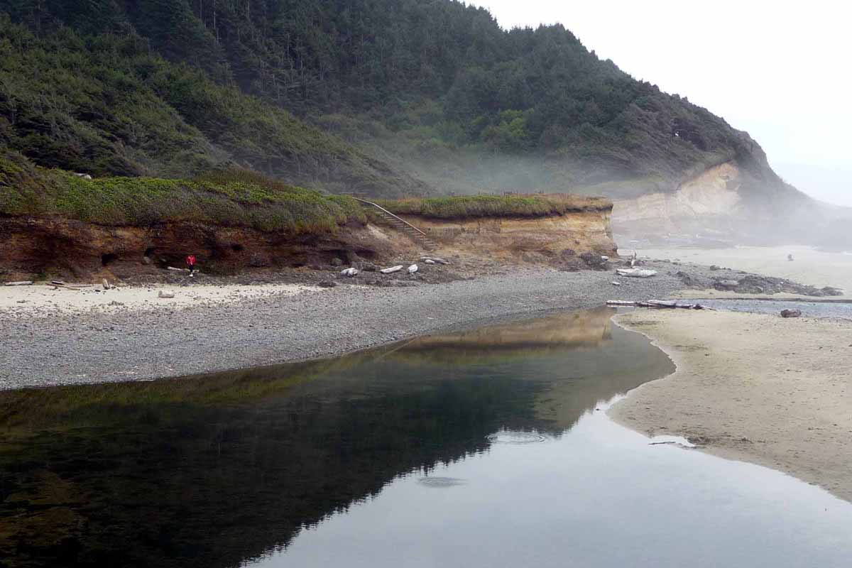 Bobbi looking for pretty stones along the beach