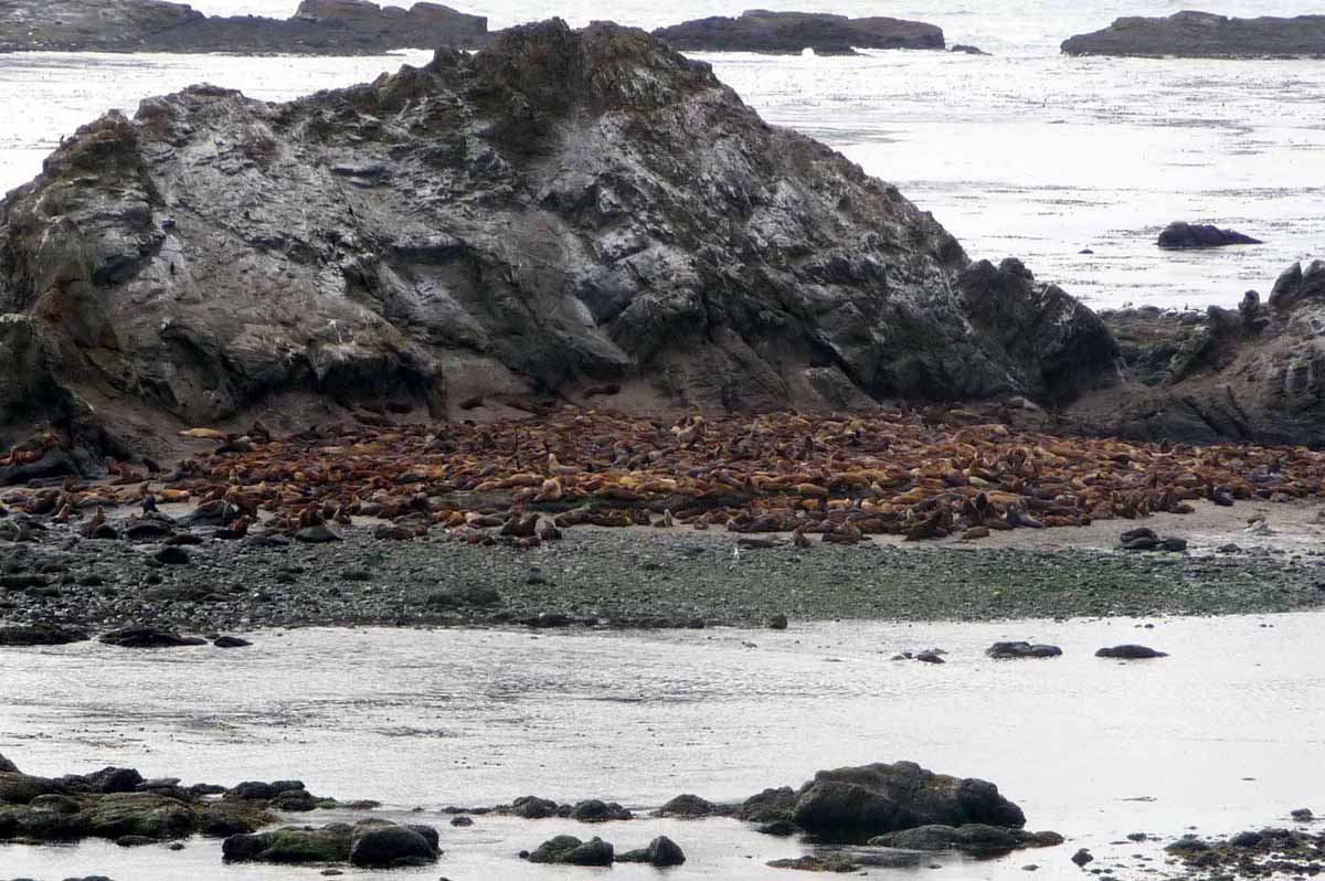 Large colony of sea lions (probably northern elephant seals, California and Steller sea lions) Back to Main Page
