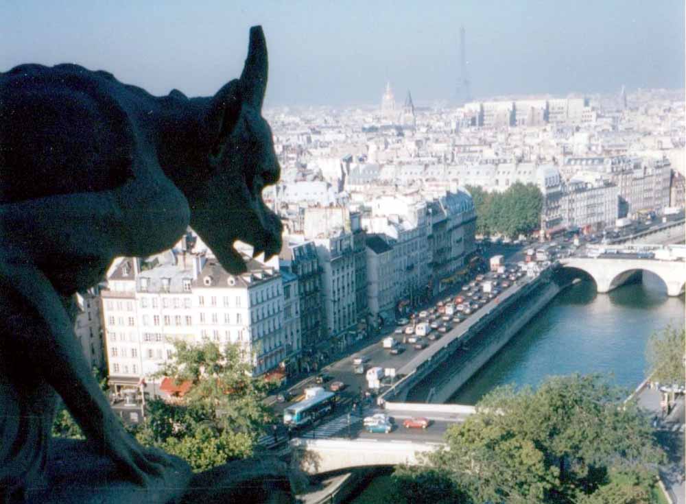 We climbed up to the top of one of the towers of the cathedral, where this gargoyle greeted us. Back to Main Page