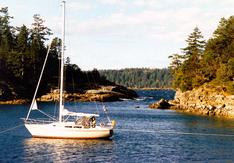 Here we ran an aft anchorline to a tree ashore and prayed that the night wind would not be too brisk Back to Main Page