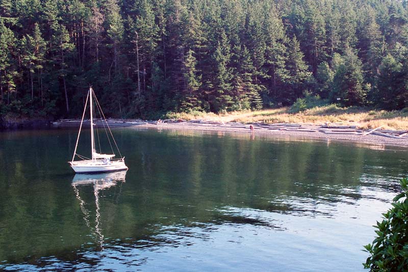 Rainbow anchored in Watmaugh Bight on Lopez Island next to Rosario Strait