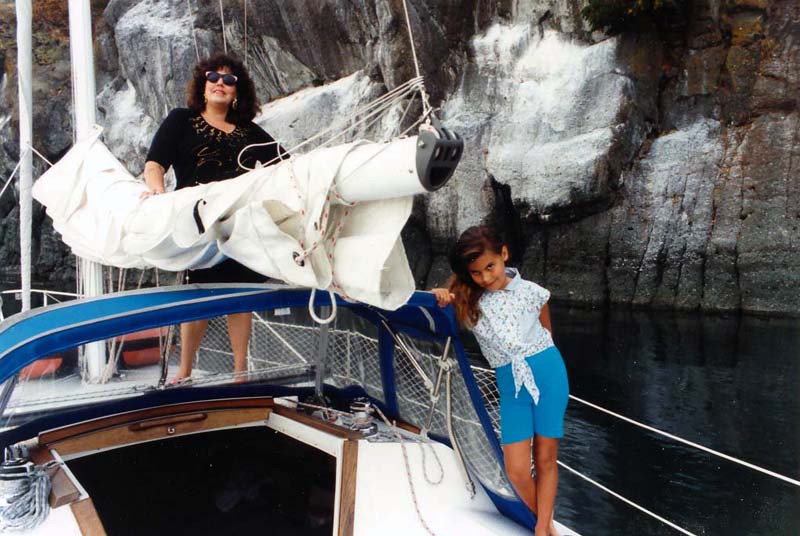 We are heading up to Desolation Sound again. The wind died and we are motoring along a steep rock face on Valdez Island Back to Main Page