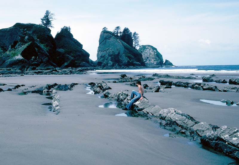 Ron is checking out this beautiful sandy beach near the Point of Arches, hoping that the sun will come out soon. Back to Main Page