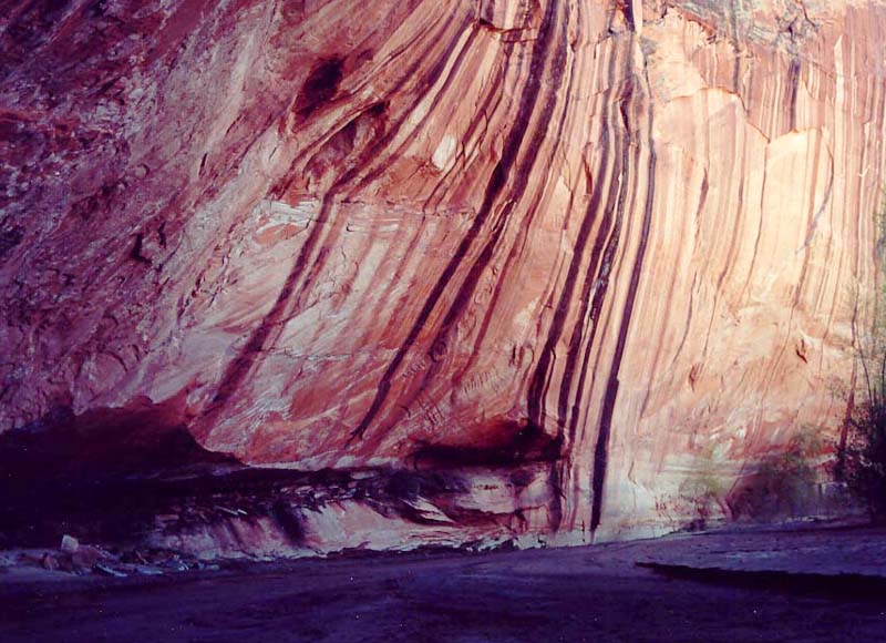 We found a giant alcove along the creek with amazing coloring and patterns on the rock walls. Back to Main Page
