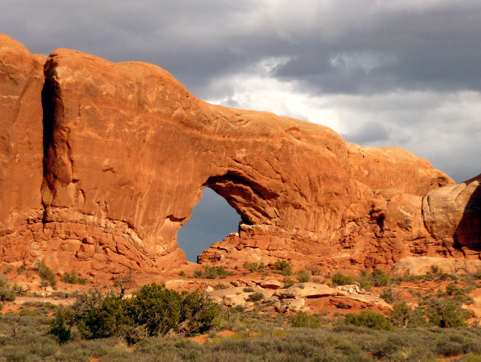 Dark clouds were gathering behind the sunlit rock wall and it rained that night.