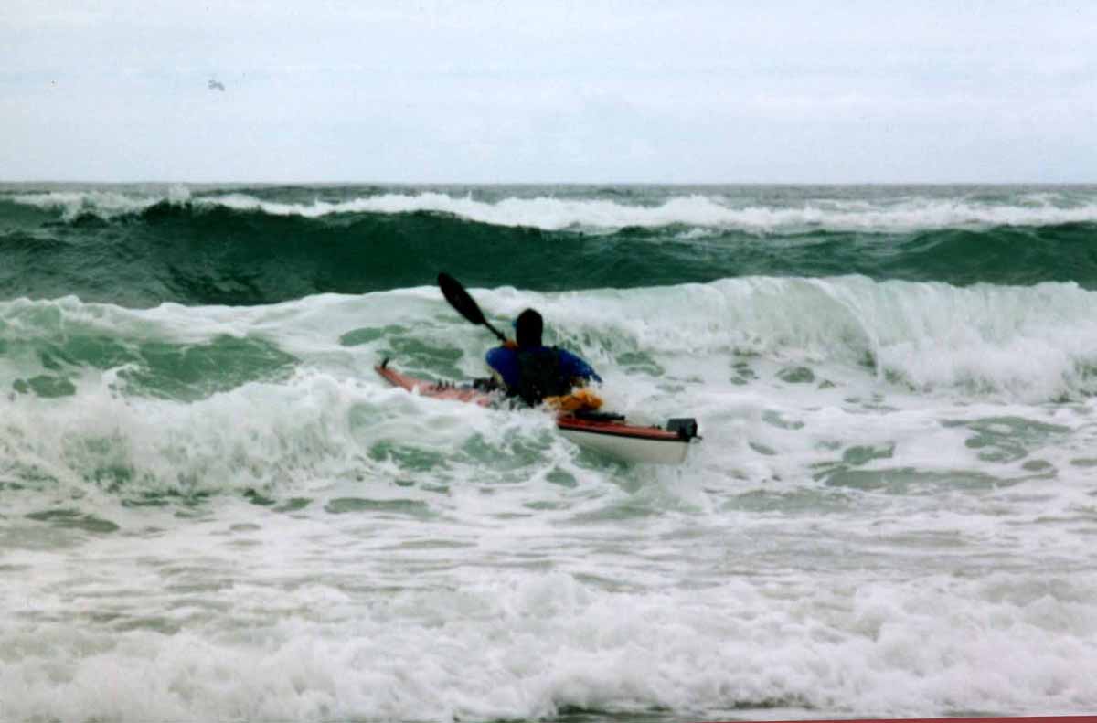 After waiting for a while for smaller waves, I took off at probably the worst time: this big surf was going to knock me over...