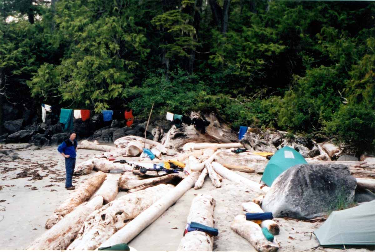 The next campsite was not exactly ideal, but it was time to try to dry our wet clothing.