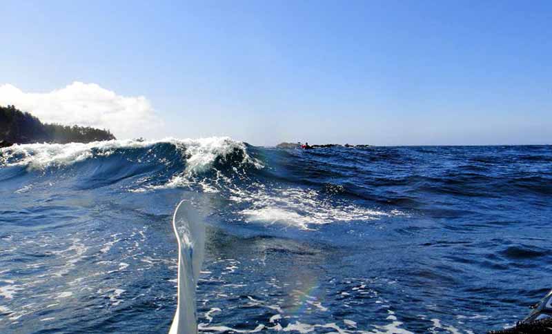 Large breaking waves made our travel around the Cape suspenseful.